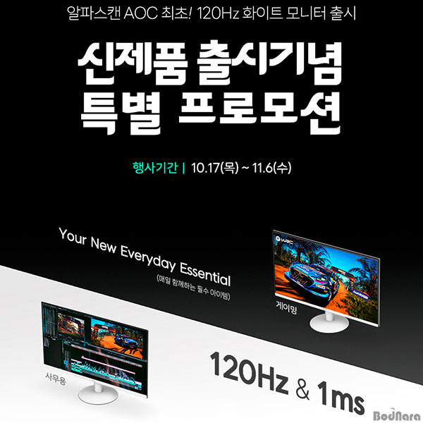 – 마우스 클릭 한 번으로 OSD 메뉴 설정 및 화면 분할이 가능한 i-Menu, Screen+ 소프트웨어 – 높은 120Hz 주사율과 1ms의 빠른 응답 속도로 업무, 영상 시청, 게임 등 다양한 용도로 사용 가능 – 3가지 방법으로 완성 나만의 책상 인테리어 보더리스 디자인의 화이트 모니터 알파스캔디스플레이(주)는 고급스러운 화이트 컬러와 3면 보더리스 디자인으로 세련된 존재감을 자랑하며, 완벽한 가성비를 갖춘 하이브리드 모니터 24B30, 27B30을 출시한다. 120Hz의 높은 재생률로 업무와 게임을 모두 지원합니다. 일반적인 사무용 모니터의 주사율이 60~75Hz인 것에 비해 신형 24인치 24B30과 27인치 27B30은 주사율 120Hz, 1ms의 빠른 응답 속도로 부드러운 화면 전환을 제공해 게임에 최적화됐다. 일반적인 작업 환경도 마찬가지입니다. 잘 수행하십시오. 이 제품은 풀HD 해상도의 IPS 패널을 구현한 화이트 컬러의 세련된 3면 보더리스 디자인, 일반 IPS 패널 대비 1.3배 향상된 1300:1의 명암비, 적응형 동기화, 눈 건강을 위한 읽기 모드, 및 시력 보호 기능. 편리한 AOC 전용 소프트웨어 등 우수한 기능을 자랑하며, 뛰어난 경제성을 제공합니다. 120Hz의 높은 새로 고침 빈도, 1ms 응답 속도 및 무료 동기화를 지원하는 저렴한 게이밍 모니터입니다. 일반 모니터의 60~75Hz보다 1.6~2배 높은 120Hz의 고주사율을 지원한다. 본격적인 게이밍 모니터의 144Hz 주사율보다는 약간 낮지만 가격은 훨씬 저렴하고 합리적이다. 하지만 경제적으로 게임을 즐기기 위해서는 최고의 선택이 될 수 있으며, 화면 전환도 원활하게 이루어지기 때문에 업무, 영상 시청, 게임 등 다양한 용도로 사용하기 적합합니다. Adaptive Sync(Free Sync) 기술을 지원하여 어떤 주사율에서도 화면이 찢어지거나 찢김 없이 부드러운 화면으로 더욱 정밀한 게임 제어가 가능하며, 게임 모드, 조준선, 블랙 이퀄라이저, 게임 컬러, 프레임 카운터 등 다양한 게이밍 지원 . 게임을 즐길 수 있도록 도와주는 기능을 제공합니다. IPS 패널로 구현한 시선을 사로잡는 보더리스 디자인과 선명하고 깨끗한 화질 일반 IPS 패널의 1000:1 명암비보다 1.3배 높은 1300:1의 명암비를 지원하는 최신 IPS 패널로 구현한 보더리스 디자인 , 제품보다 화면이 더 크게 느껴지며 화면에 대한 몰입감을 극대화하고, 다중 디스플레이 구성 시에도 모니터 간 앱이나 창 이동 시 시각적인 끊김이 거의 없어 원활하고 생산적인 업무 환경을 보장합니다. 트렌디한 화이트 컬러의 외관과 고급스럽고 견고한 스탠드를 갖추고 있어 책상 인테리어 아이템으로 활용하기 좋습니다. 수직형 모니터로 사용을 원하시는 고객님께서는 모니터암이나 멀티스탠드를 설치하시면 되며, 알파스캔 모니터암 AM400과 호환됩니다. 시력을 보호하고 생산성을 높이는 다양한 소프트웨어가 제공됩니다. 눈부심 방지 논글레어 패널을 적용한 신제품은 깜박임 현상이 없고 블루라이트가 적은 제품으로 장시간 사용해도 눈의 피로를 줄여주어 모니터 화면을 보면서 작업하는 사용자에게 추천한다. 오랜 기간 동안. . AOC 모니터 전용 소프트웨어인 ‘i-Menu’를 설치하면 OSD 버튼 대신 마우스로 모니터 설정을 쉽게 제어할 수 있으며, ‘Screen+’를 설치하면 17개의 화면 분할 옵션을 제공해 최대 8개까지 실행할 수 있다. 프로그램을 한 화면에 시청하면서 멀티태스킹이 가능하기 때문에 업무 효율성을 극대화할 수 있습니다. 알파스캔 측은 “사무용 모니터의 주사율 표준이 75Hz에서 100Hz로 빠르게 이동하고 있는데, 이번 신제품은 더욱 업그레이드된 120Hz를 지원해 누구보다 빠르게 최신 트렌드를 경험할 수 있게 됐다”고 말했다. “아름다운 흰색 디자인과 업무, 엔터테인먼트 등을 위한 다양한 기능을 갖추고 있습니다.” “목적이 결합된 하이브리드 모니터로 많은 개인 고객과 기업 고객이 선택하게 될 것으로 기대합니다.” 한편, 알파스캔 모니터에 관한 자세한 내용은 알파스캔 홈페이지(alphascan.co.kr), 알파스캔 공식 블로그(blog.naver.com/alphascan314), 알파스캔 인스타그램(www.instagram.com/alphascan1995/)에서 확인할 수 있다. 당신은 할 수 있습니다.